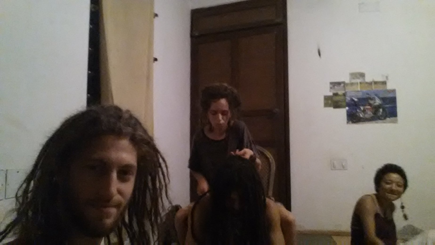 I was visiting friends at Serenity Beach just outside Auroville for a long holiday weekend (Ghandi’s Birthday). After emerging from the warm South-Indian water, my friend V complimented my long, dripping wet hair. She told me I would look great with my hair dreaded, and she offered to lock my hair. Flattered, I gratefully accepted her gift!