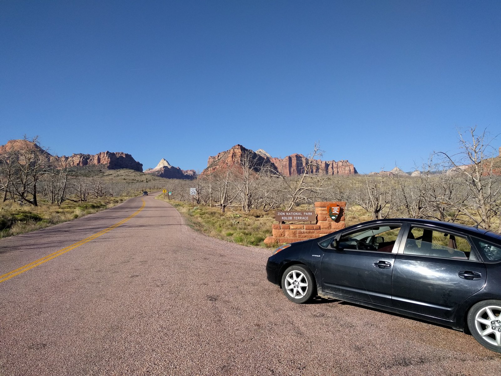 From Taos I traveled to Zion National Park (passing the Glenn Canyon Dam), where I hiked most of the Trans Zion trail (what I could without double-backing due to road closures). The (private) shuttles in Zion are outrageously priced, so–instead of paying $100–I cached my bicycle (with some water) at the end of the trailhead, then rode down the mountain back to the main road, stuck out my thumb, and quickly got a ride back to the park entrance where my car was parked.