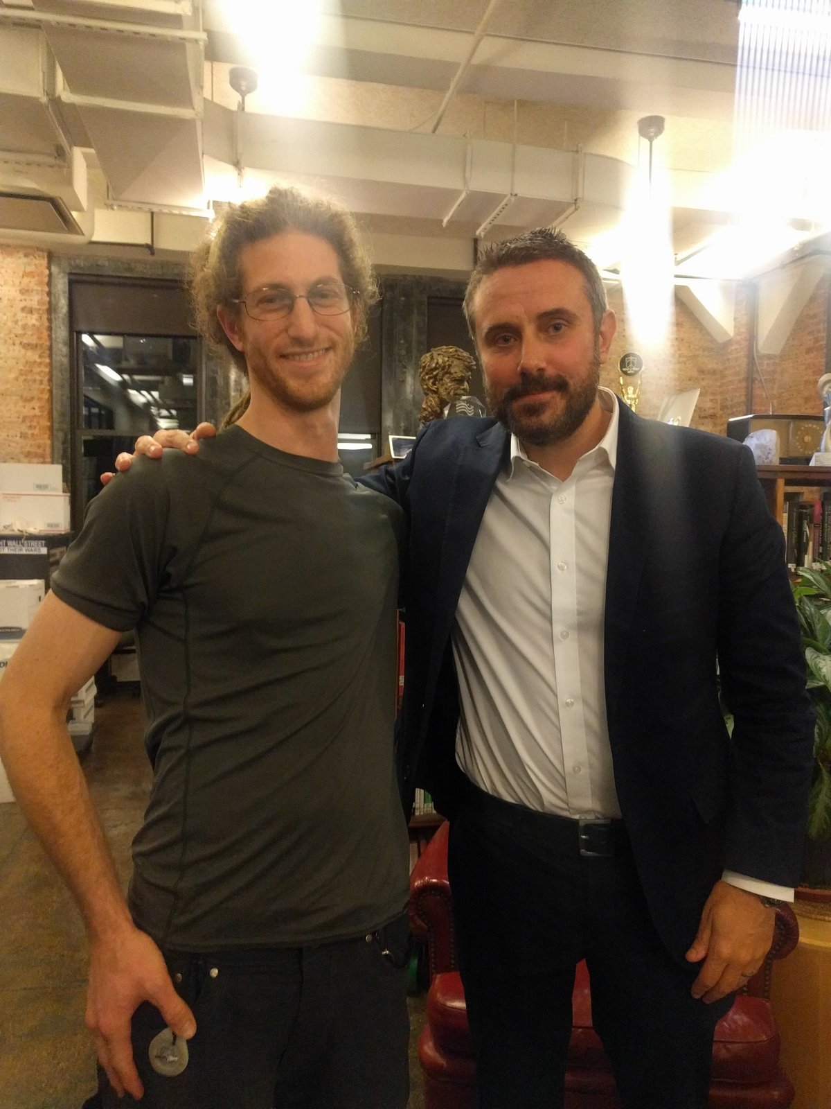Mikey and J outside the Grassroots House in Oakland showing letter to Barbara Lee in wake of Operation Protective Edge