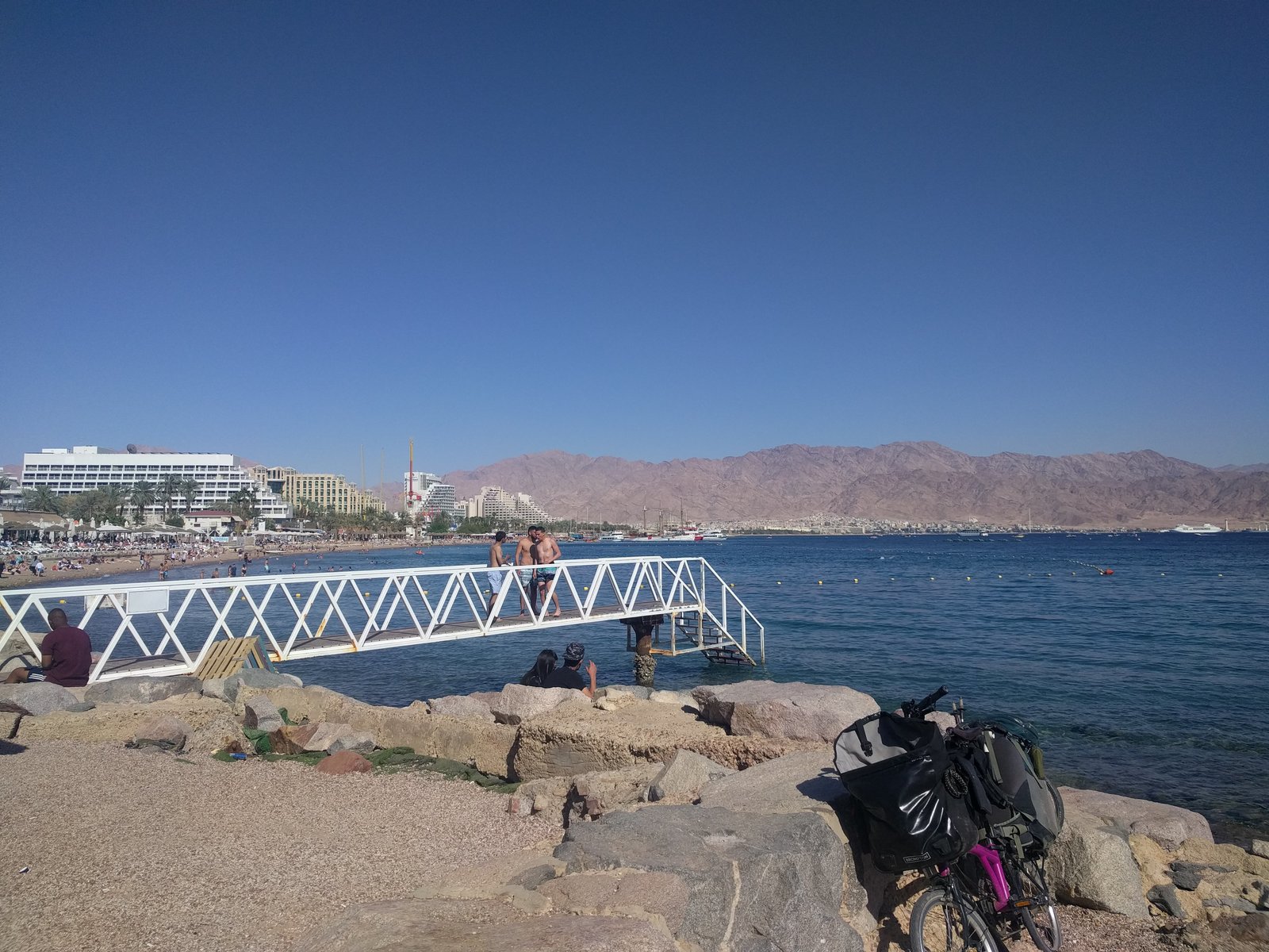 My time in Palestine ended with a ride from the Golan Heights in occupied Syria at the headwaters to the Jordan river down to the Red Sea at Eilat–400 km away. I cycled from the mountains to the Dead Sea and continued south through the Negev desert.